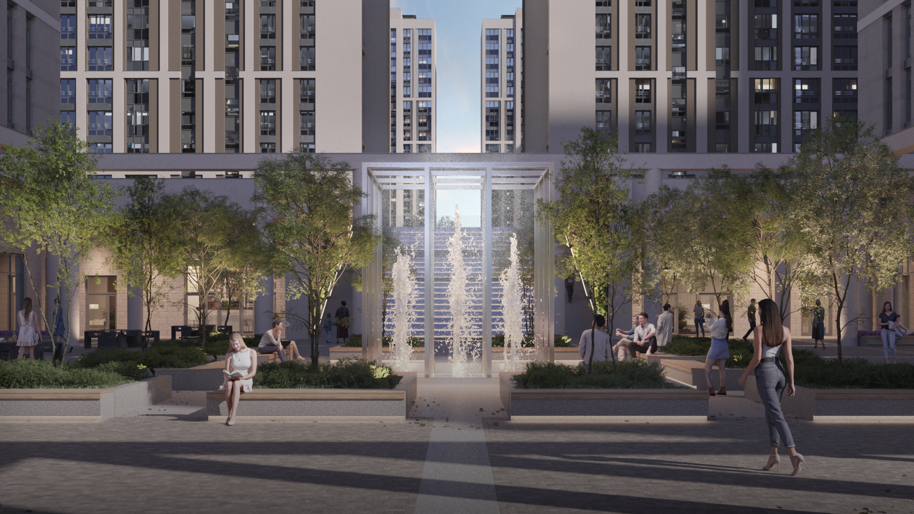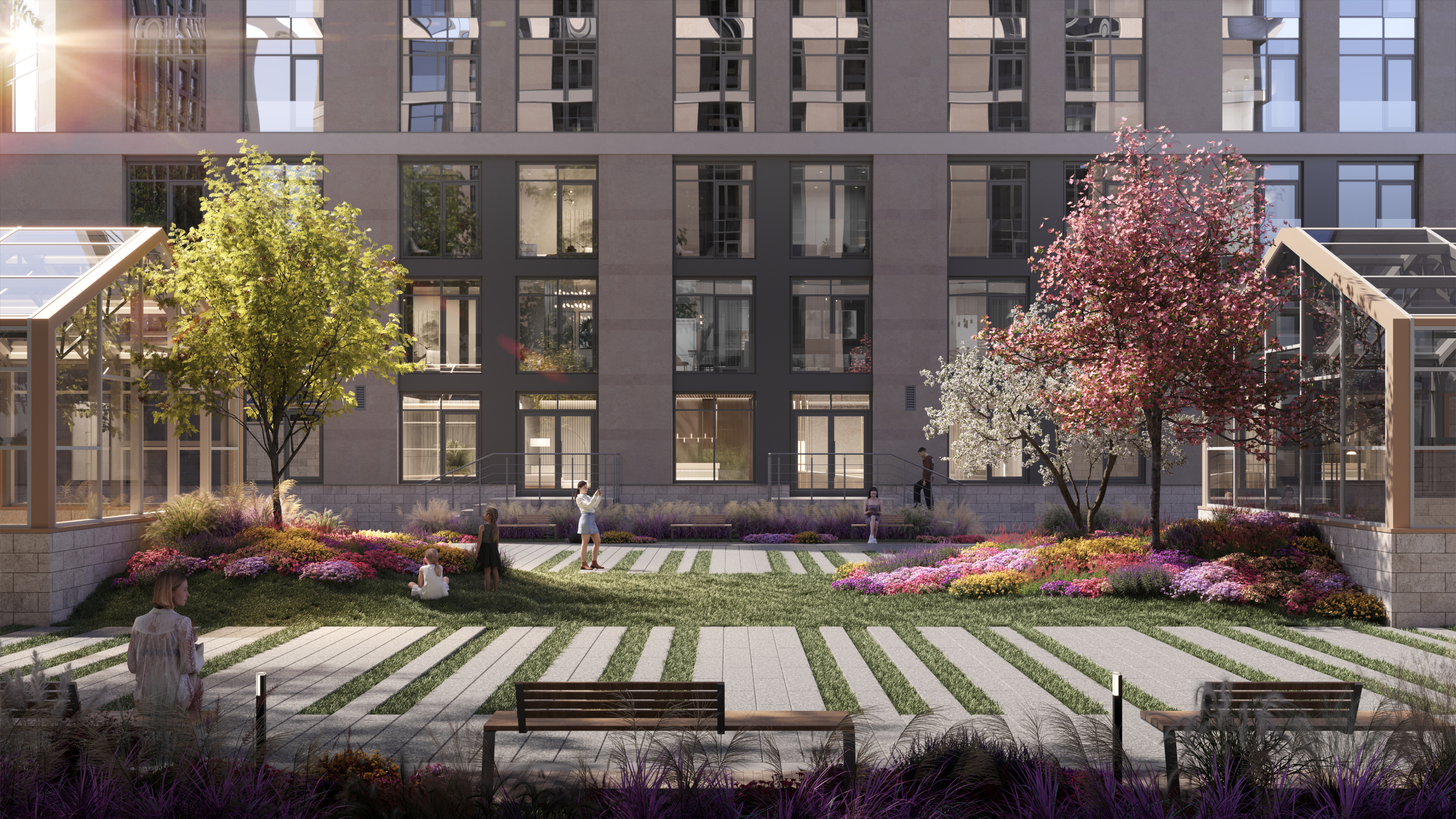 Специально для ЖК «Дефанс» ландшафтное бюро «Нескучный сад» разработало эксклюзивную концепцию благоустройства.